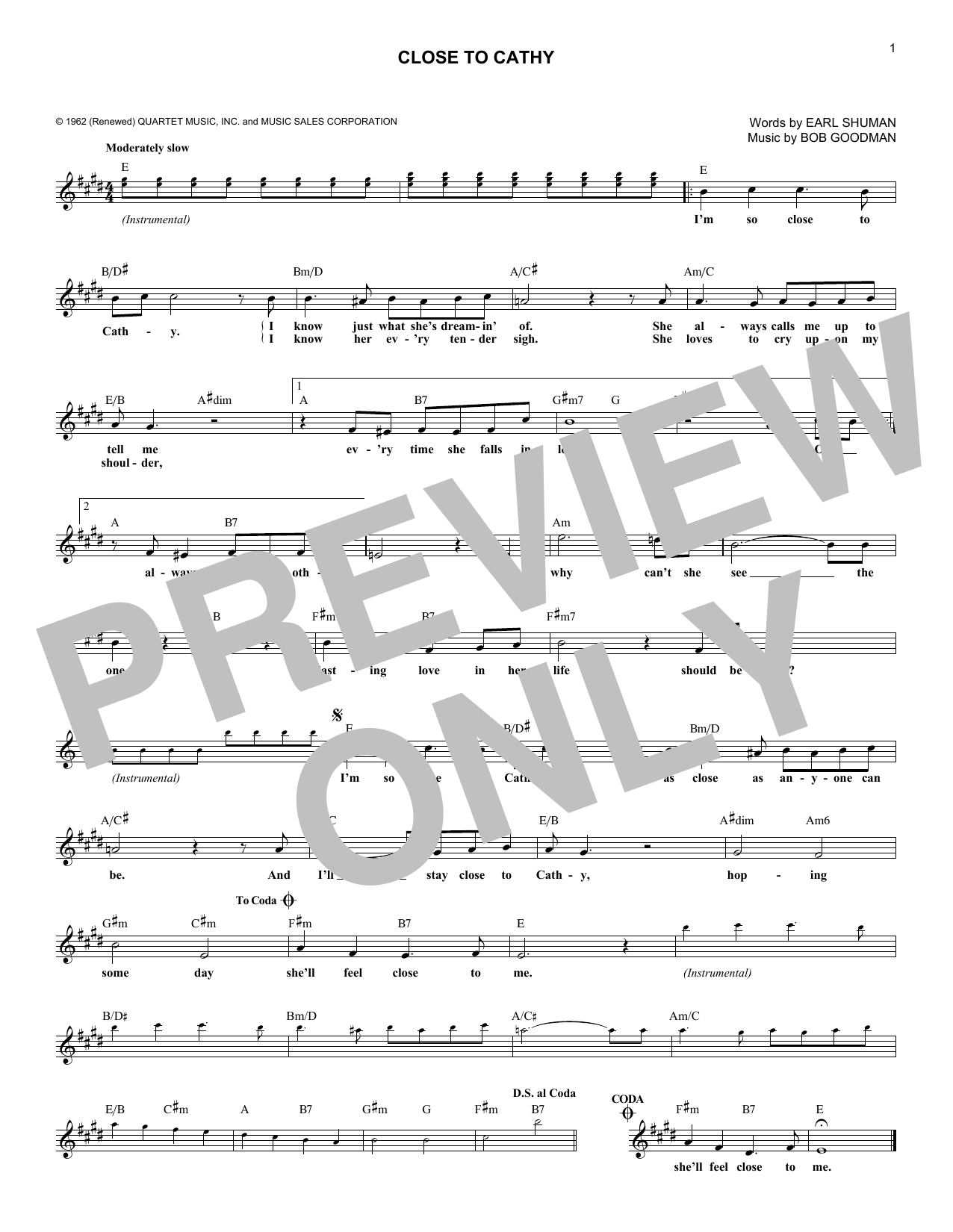 Download or print Mike Clifford Close To Cathy sheet music, chords and digital score arranged for Lead Sheet / Fake Book. This Pop score includes 1 page(s).