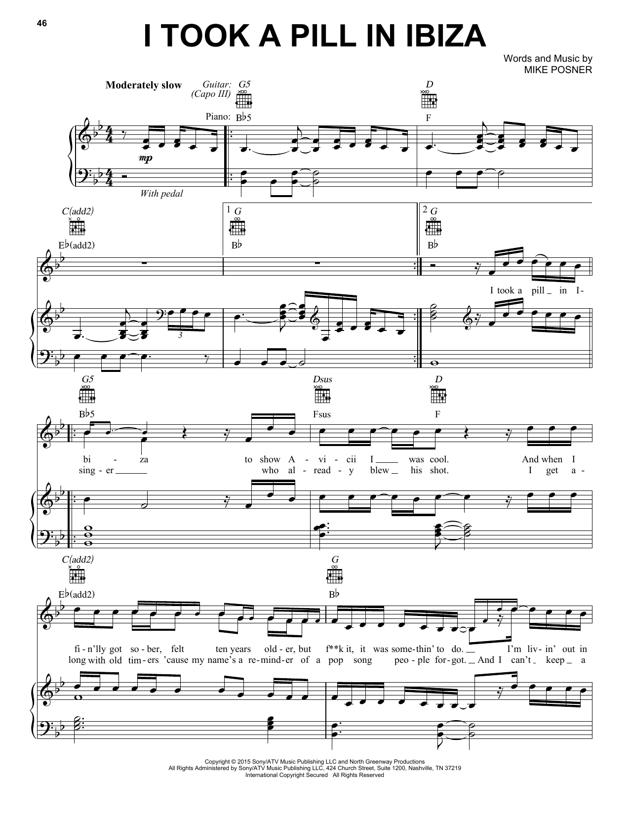 Download or print Mike Posner I Took A Pill In Ibiza sheet music, chords and digital score arranged for Easy Guitar Tab. This Pop score includes 4 page(s).