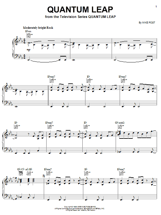 Download or print Mike Post Quantum Leap sheet music, chords and digital score arranged for Lead Sheet / Fake Book. This Film/TV score includes 1 page(s).