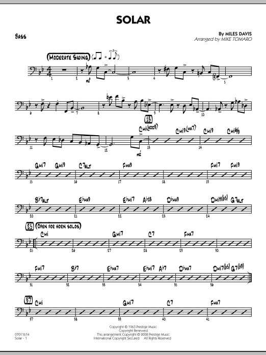 Download or print Mike Tomaro Solar - Bass sheet music, chords and digital score arranged for Jazz Ensemble. This Jazz score includes 3 page(s).