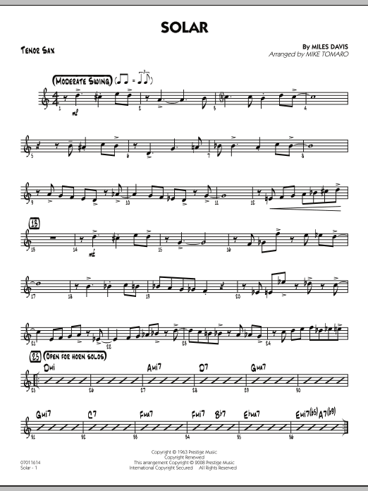 Download or print Mike Tomaro Solar - Tenor Sax sheet music, chords and digital score arranged for Jazz Ensemble. This Jazz score includes 3 page(s).