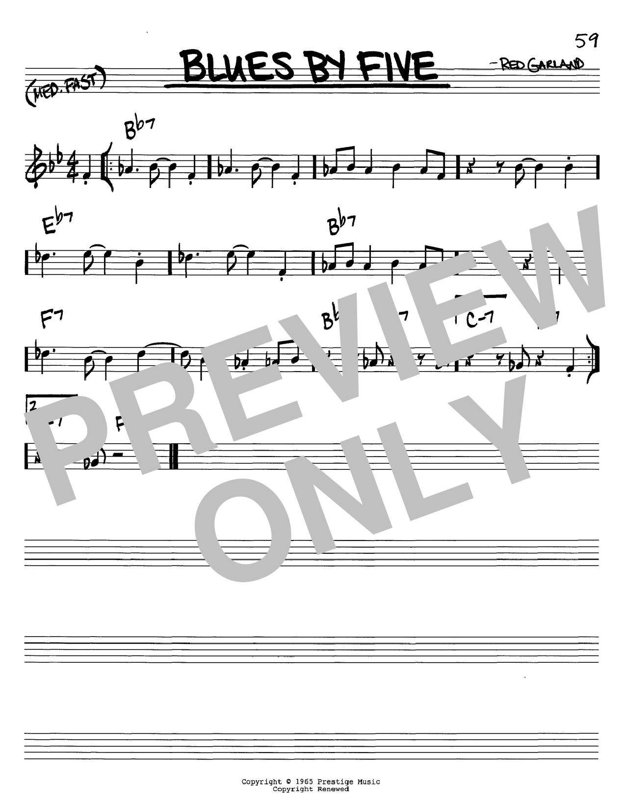 Download or print Miles Davis Blues By Five sheet music, chords and digital score arranged for Real Book – Melody & Chords – Bass Clef Instruments. This Jazz score includes 1 page(s).
