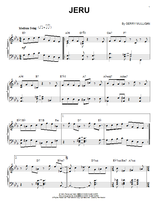 Download or print Miles Davis Jeru sheet music, chords and digital score arranged for Trumpet Transcription. This Jazz score includes 3 page(s).