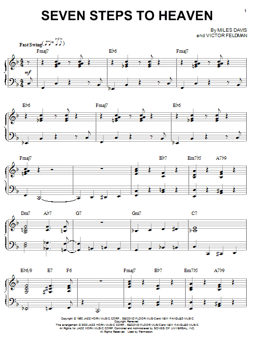 Download or print Miles Davis Seven Steps To Heaven sheet music, chords and digital score arranged for Real Book – Melody & Chords – Eb Instruments. This Jazz score includes 2 page(s).