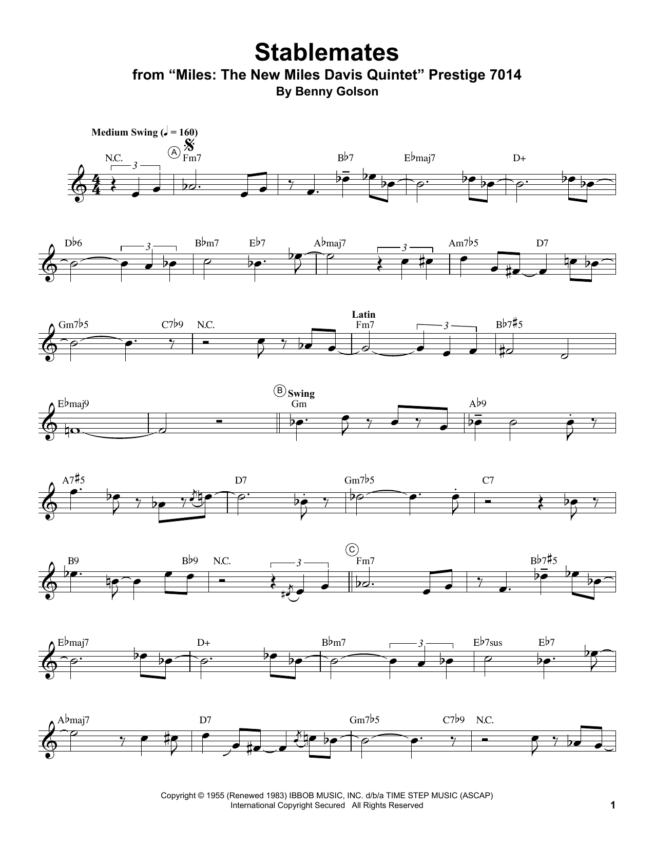 Download or print Miles Davis Stablemates sheet music, chords and digital score arranged for Trumpet Transcription. This Jazz score includes 3 page(s).