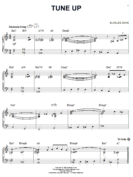 Download or print Miles Davis Tune Up sheet music, chords and digital score arranged for Real Book – Melody & Chords – Bass Clef Instruments. This Jazz score includes 1 page(s).