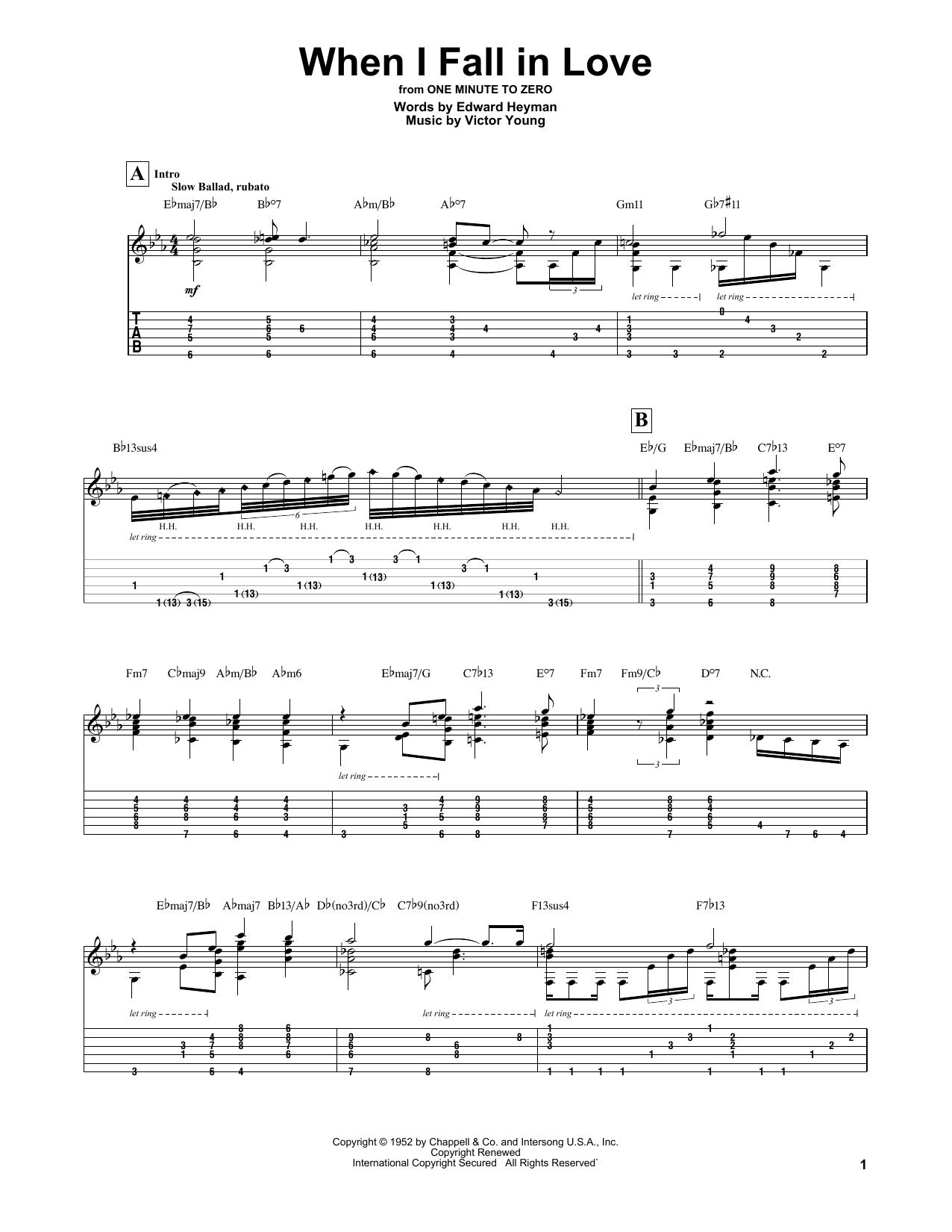 Download or print Miles Davis When I Fall In Love sheet music, chords and digital score arranged for Solo Guitar. This Jazz score includes 3 page(s).