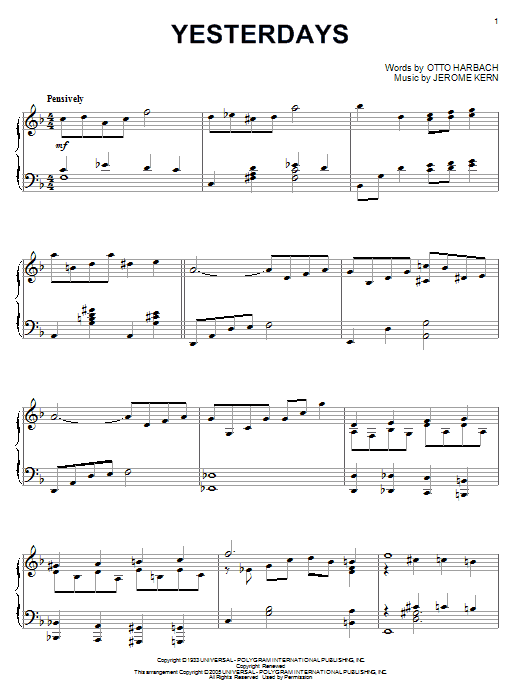 Download or print Miles Davis Yesterdays sheet music, chords and digital score arranged for Piano Solo. This Jazz score includes 3 page(s).