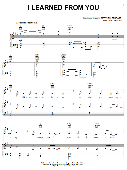 Download or print Miley Cyrus I Learned From You sheet music, chords and digital score arranged for Big Note Piano. This Pop score includes 8 page(s).