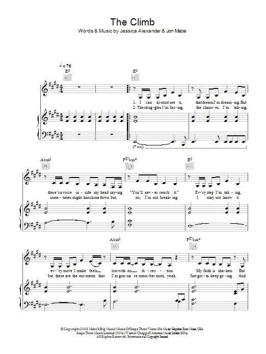 Download or print Miley Cyrus The Climb (from Hannah Montana: The Movie) sheet music, chords and digital score arranged for Easy Piano. This Disney score includes 6 page(s).