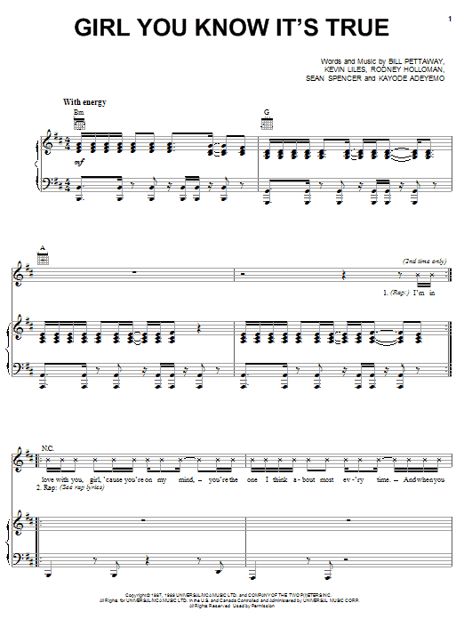 Download or print Milli Vanilli Girl You Know It's True sheet music, chords and digital score arranged for Piano, Vocal & Guitar Chords (Right-Hand Melody). This Pop score includes 6 page(s).