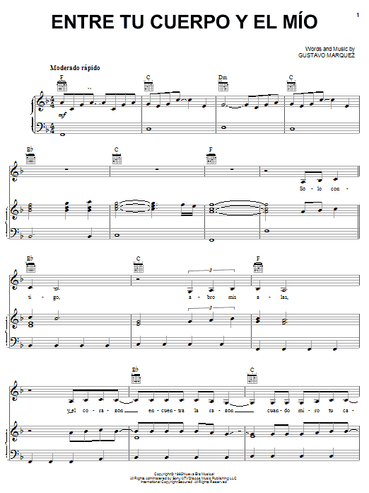 Quick facts Entre Tu Cuerpo Y El Mio about digital sheet music