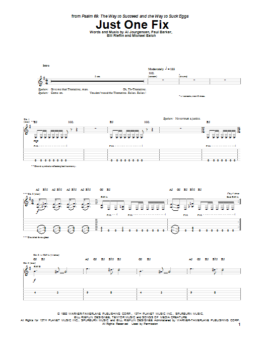 Download or print Ministry Just One Fix sheet music, chords and digital score arranged for Guitar Tab. This Rock score includes 6 page(s).