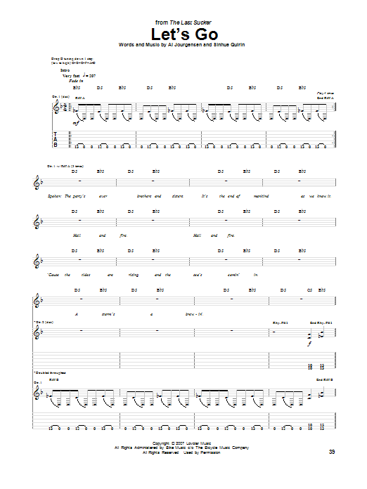Download or print Ministry Let's Go sheet music, chords and digital score arranged for Guitar Tab. This Rock score includes 9 page(s).