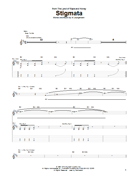 Download or print Ministry Stigmata sheet music, chords and digital score arranged for Guitar Tab. This Metal score includes 6 page(s).