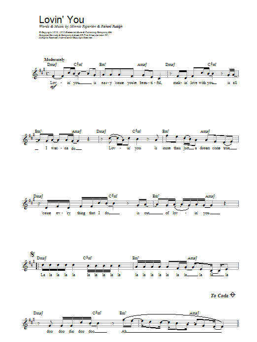Download or print Minnie Riperton Lovin' You sheet music, chords and digital score arranged for Guitar Tab. This Folk score includes 3 page(s).