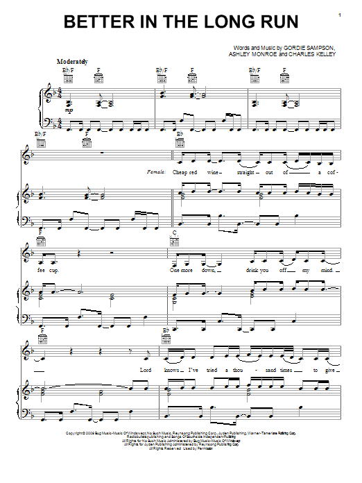 Download or print Miranda Lambert Better In The Long Run sheet music, chords and digital score arranged for Piano, Vocal & Guitar Chords (Right-Hand Melody). This Country score includes 6 page(s).
