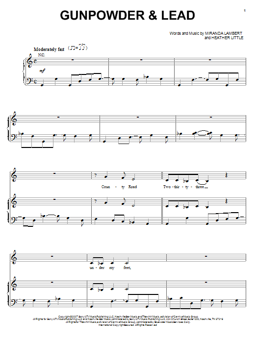 Download or print Miranda Lambert Gunpowder & Lead sheet music, chords and digital score arranged for Piano, Vocal & Guitar Chords (Right-Hand Melody). This Country score includes 8 page(s).