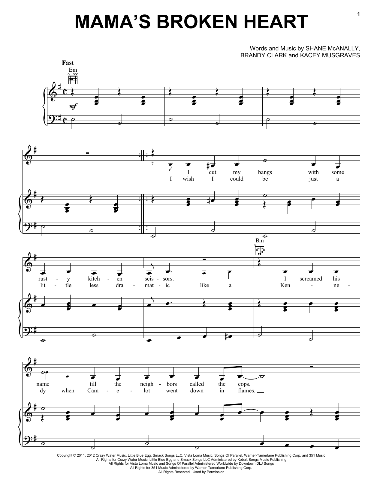 Quick facts Mama's Broken Heart about digital sheet music