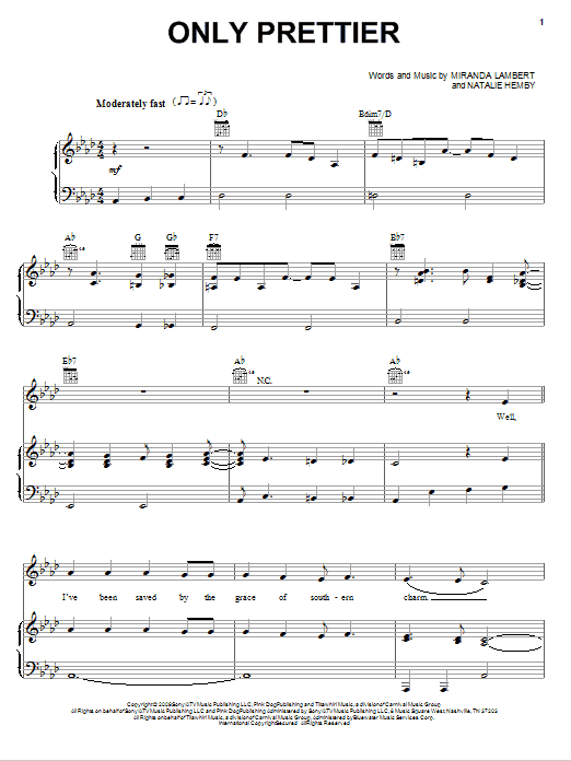 Download or print Miranda Lambert Only Prettier sheet music, chords and digital score arranged for Piano, Vocal & Guitar Chords (Right-Hand Melody). This Country score includes 6 page(s).