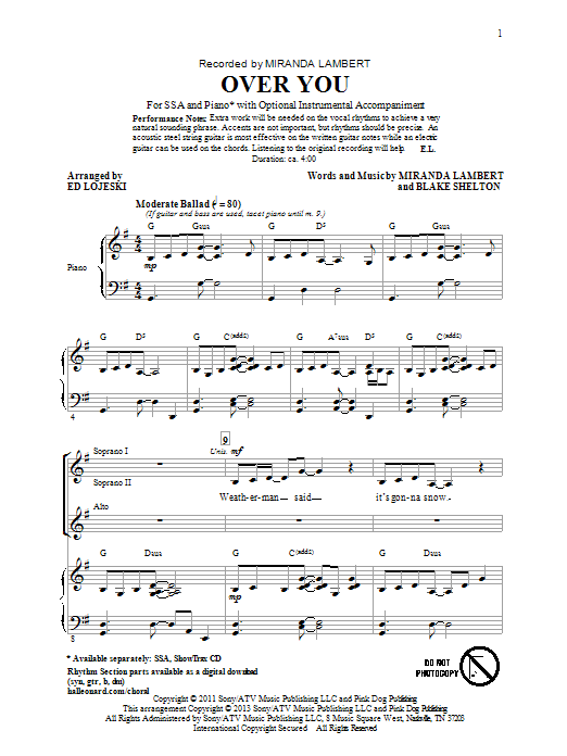 Download or print Ed Lojeski Over You sheet music, chords and digital score arranged for SSA Choir. This Pop score includes 10 page(s).