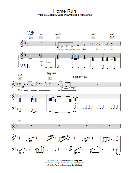 Download or print Misha B Home Run sheet music, chords and digital score arranged for Piano, Vocal & Guitar Chords. This Pop score includes 6 page(s).
