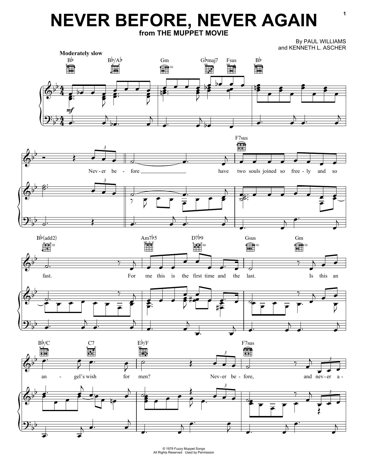 Quick facts Never Before, Never Again (from The Muppet Movie) about digital sheet music
