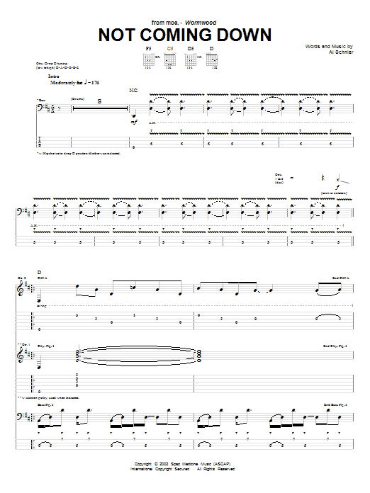 Download or print moe. Not Coming Down sheet music, chords and digital score arranged for Guitar Tab. This Pop score includes 11 page(s).