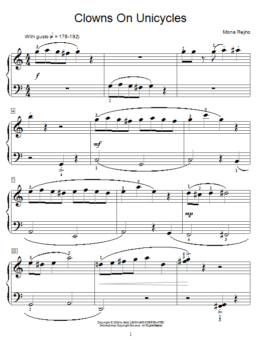 Download or print Mona Rejino Clowns On Unicycles sheet music, chords and digital score arranged for Piano Solo. This Instructional score includes 1 page(s).