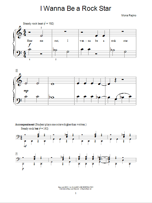 Download or print Mona Rejino I Wanna Be A Rock Star sheet music, chords and digital score arranged for Educational Piano. This Children score includes 3 page(s).
