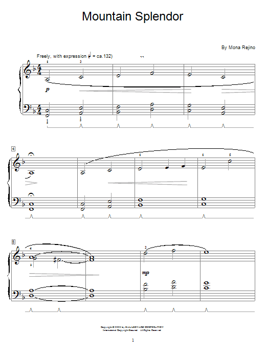 Download or print Mona Rejino Mountain Splendor sheet music, chords and digital score arranged for Educational Piano. This Children score includes 4 page(s).