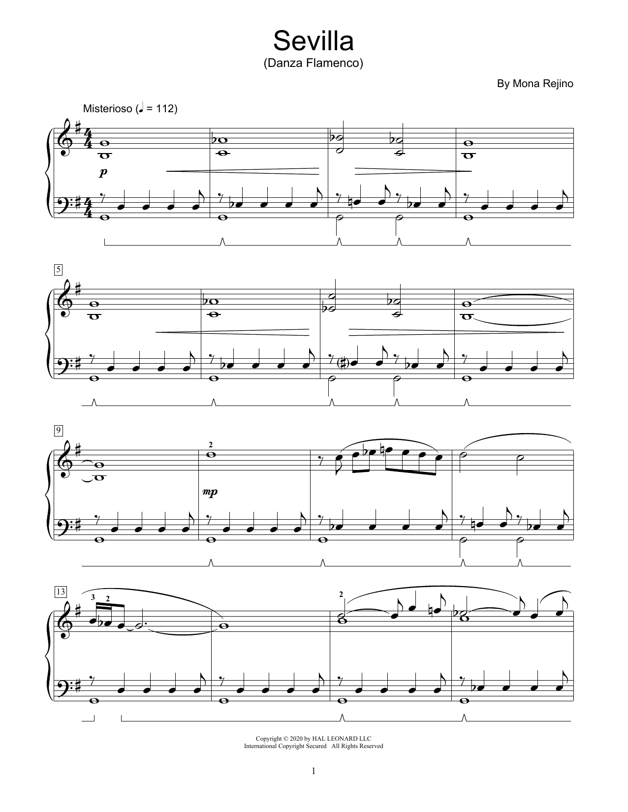 Download or print Mona Rejino Sevilla (Danza Flamenco) sheet music, chords and digital score arranged for Educational Piano. This Spanish score includes 5 page(s).
