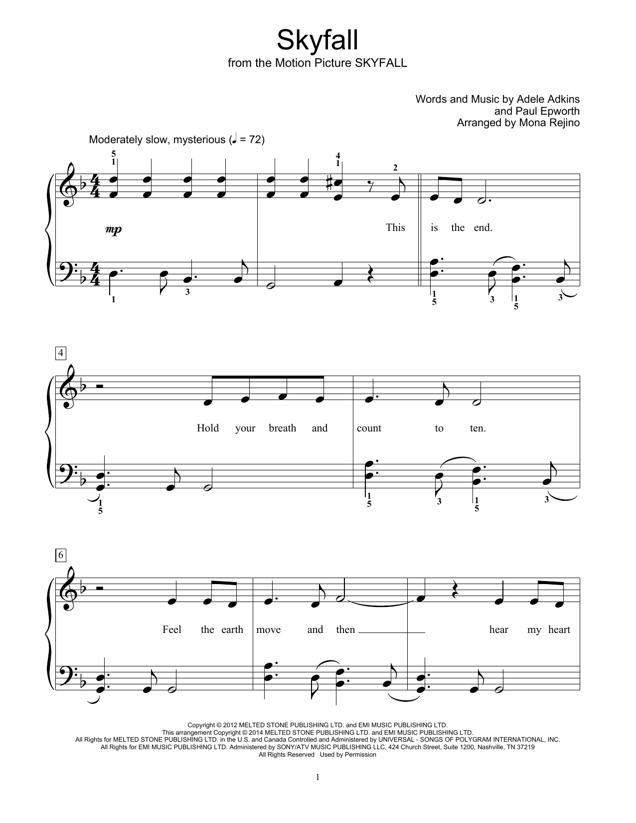 Download or print Mona Rejino Skyfall sheet music, chords and digital score arranged for Educational Piano. This Instructional score includes 3 page(s).