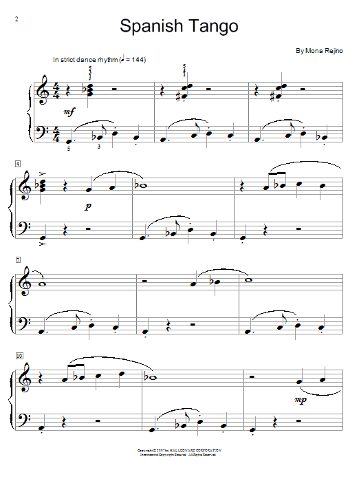 Download or print Mona Rejino Spanish Tango sheet music, chords and digital score arranged for Educational Piano. This Latin score includes 3 page(s).
