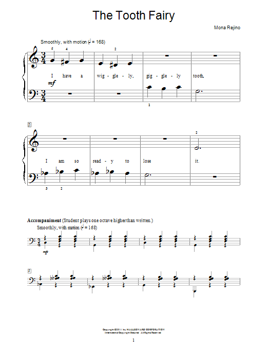 Download or print Mona Rejino The Tooth Fairy sheet music, chords and digital score arranged for Piano Solo. This Instructional score includes 1 page(s).