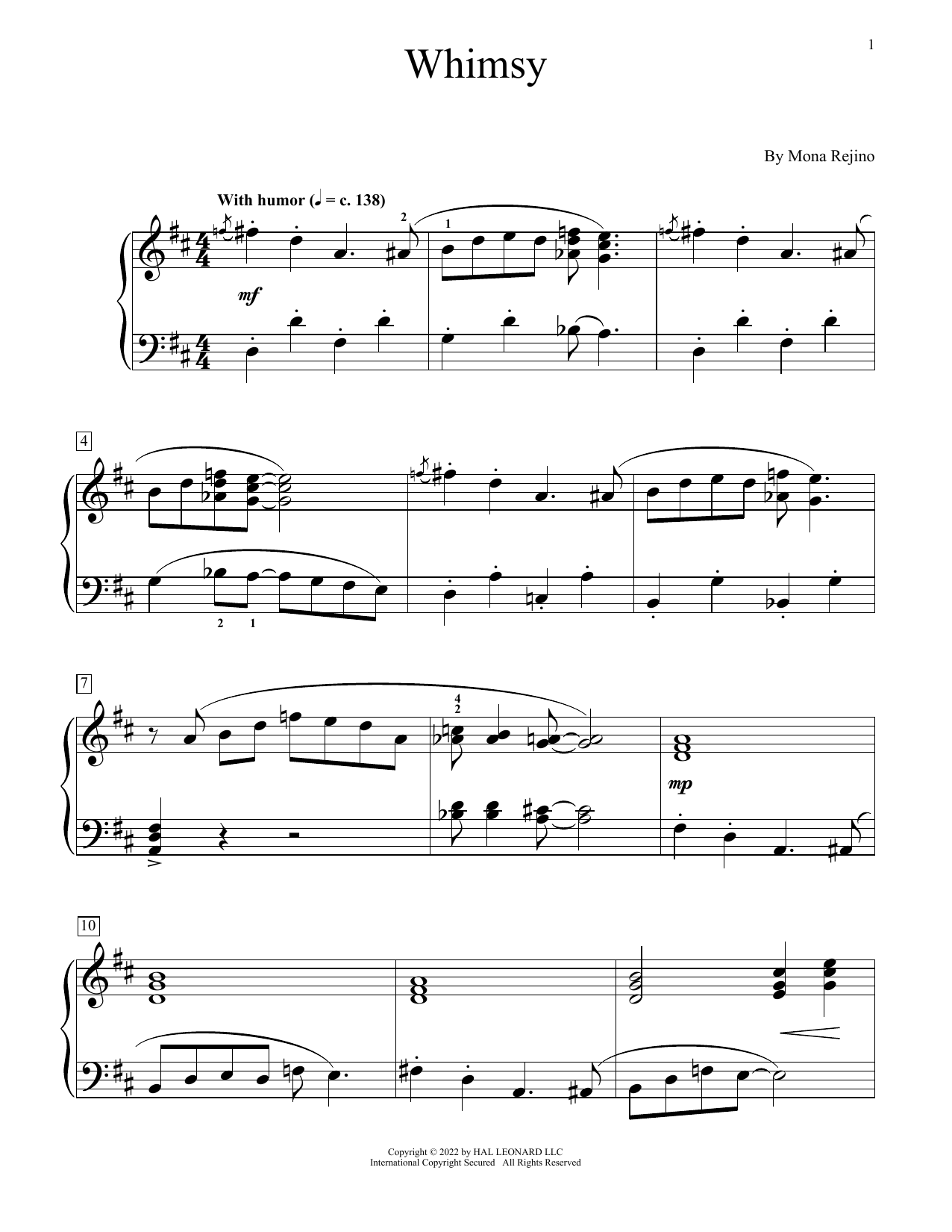Download or print Mona Rejino Whimsy sheet music, chords and digital score arranged for Educational Piano. This Instructional score includes 3 page(s).