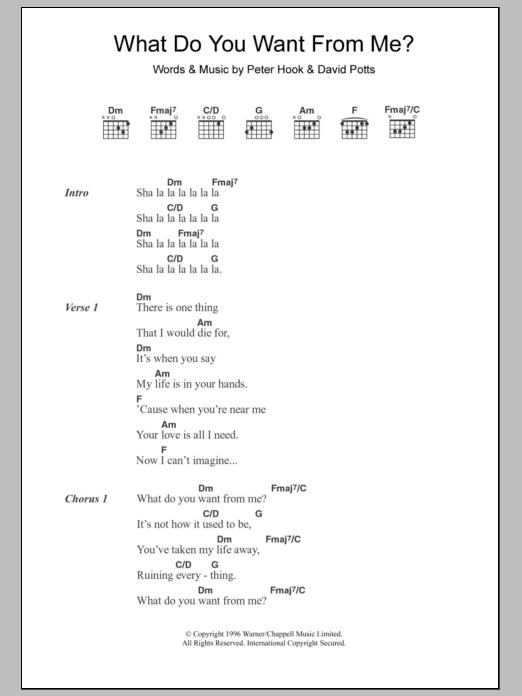 Download or print Monaco What Do You Want From Me? sheet music, chords and digital score arranged for Guitar Chords/Lyrics. This Pop score includes 2 page(s).