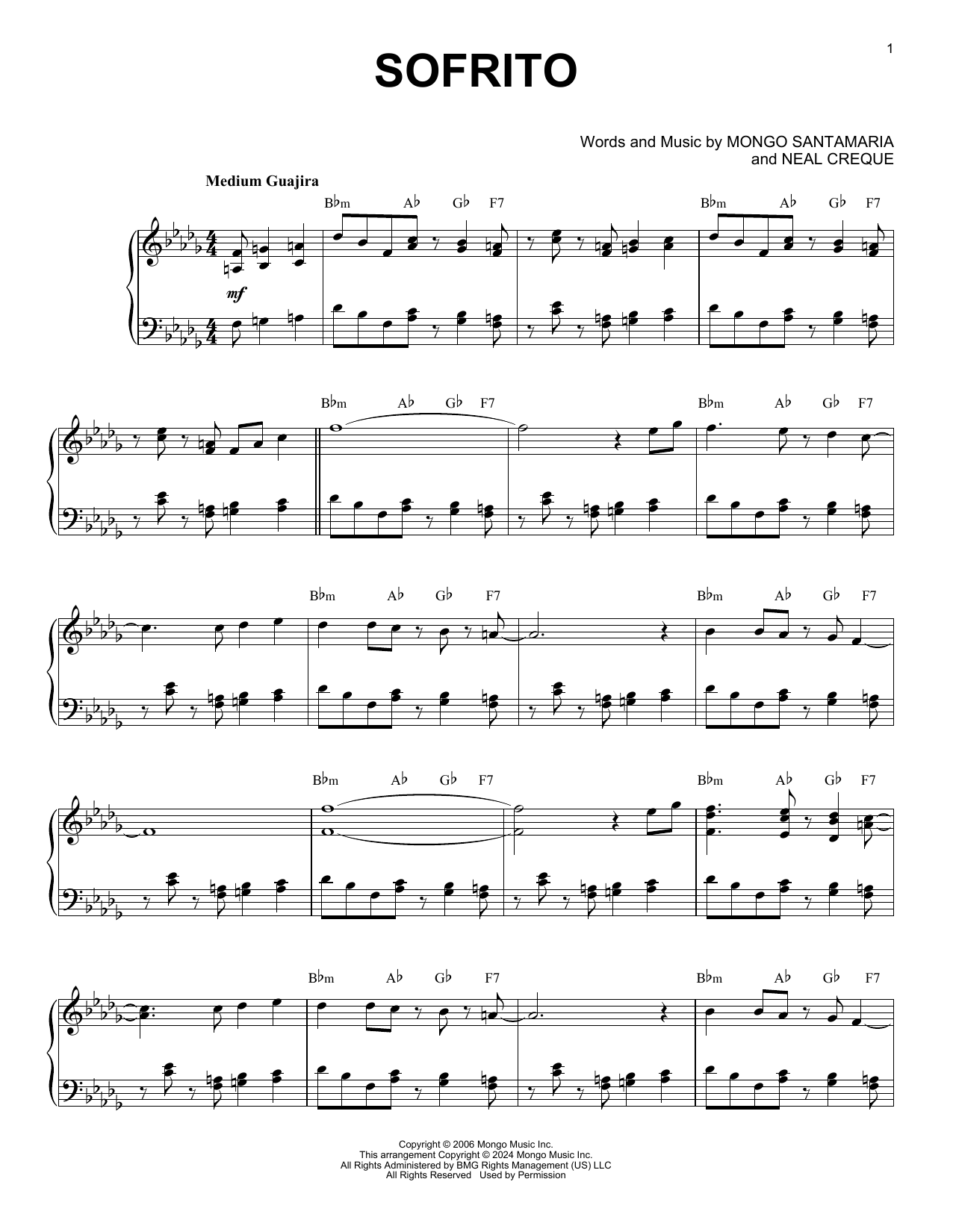 Download or print Mongo Santamaria Sofrito (arr. Brent Edstrom) sheet music, chords and digital score arranged for Piano Solo. This Jazz score includes 4 page(s).