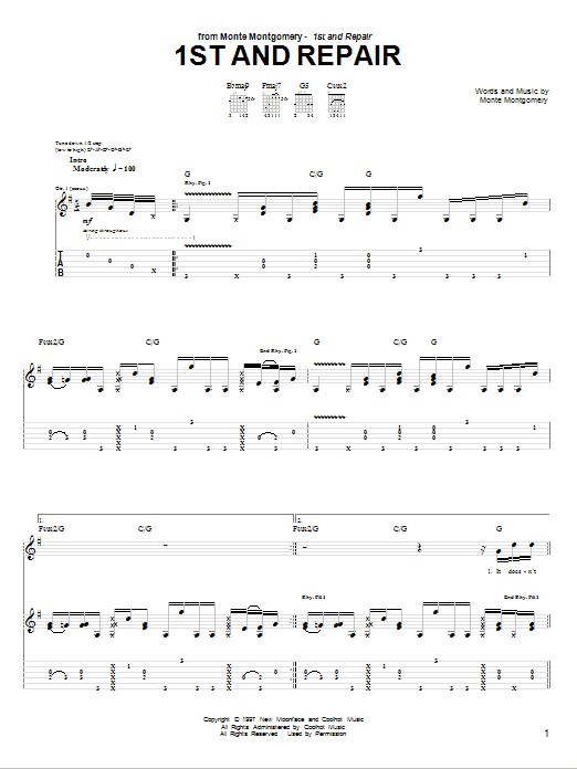 Download or print Monte Montgomery 1st And Repair sheet music, chords and digital score arranged for Guitar Tab. This Pop score includes 7 page(s).