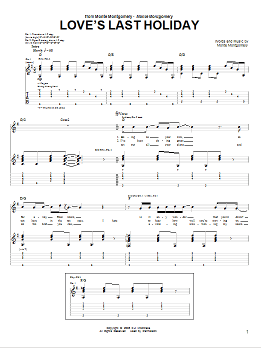 Download or print Monte Montgomery Love's Last Holiday sheet music, chords and digital score arranged for Guitar Tab. This Pop score includes 6 page(s).