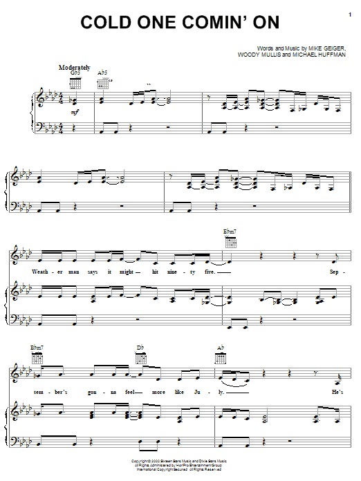Download or print Montgomery Gentry Cold One Comin' On sheet music, chords and digital score arranged for Piano, Vocal & Guitar Chords (Right-Hand Melody). This Country score includes 7 page(s).