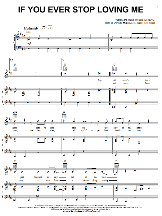 Download or print Montgomery Gentry If You Ever Stop Loving Me sheet music, chords and digital score arranged for Piano, Vocal & Guitar Chords (Right-Hand Melody). This Country score includes 7 page(s).