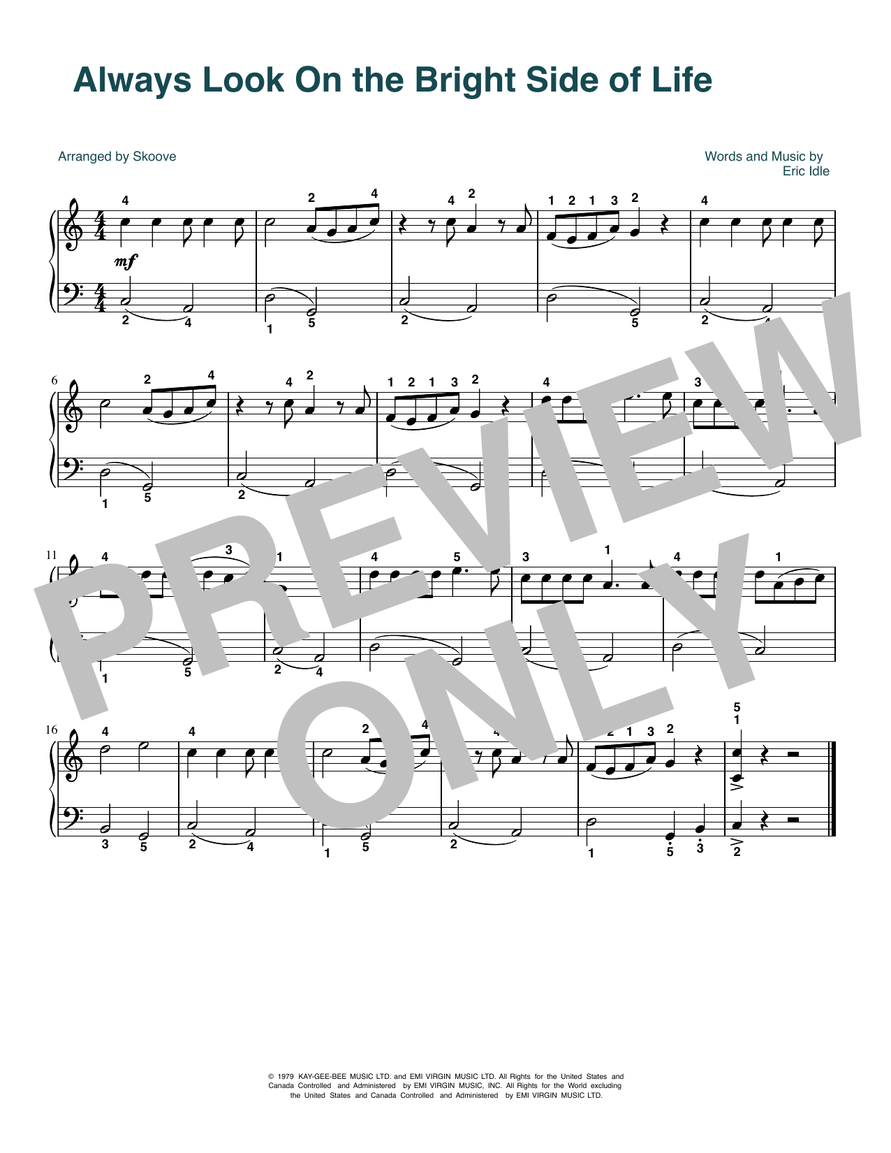 Quick facts Always Look On The Bright Side Of Life (arr. Skoove) about digital sheet music