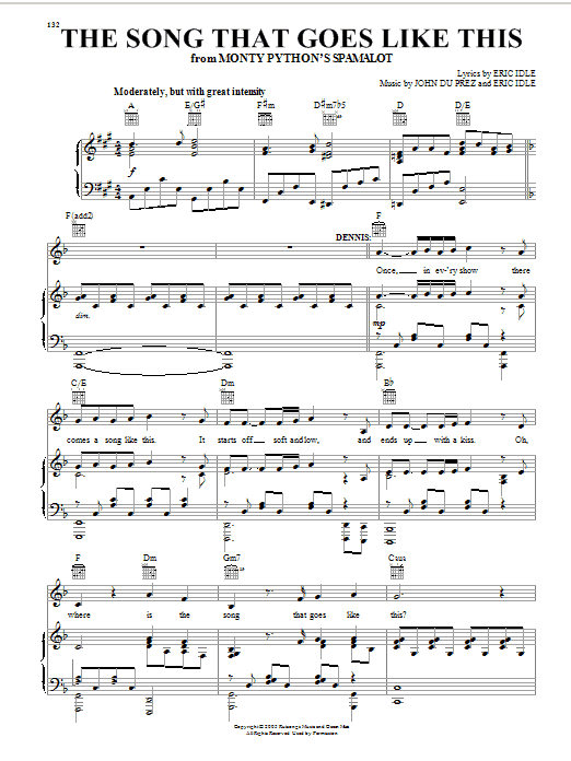 Quick facts The Song That Goes Like This (from Monty Python's Spamalot) about digital sheet music