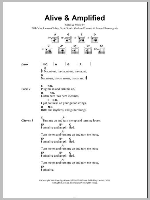 Download or print Mooney Suzuki Alive And Amplified sheet music, chords and digital score arranged for Guitar Chords/Lyrics. This Rock score includes 2 page(s).