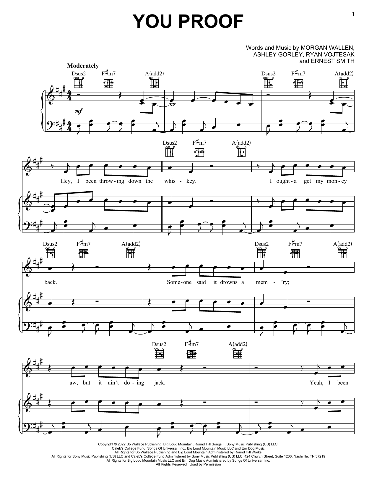 Download or print Morgan Wallen You Proof sheet music, chords and digital score arranged for Piano, Vocal & Guitar Chords (Right-Hand Melody). This Country score includes 7 page(s).