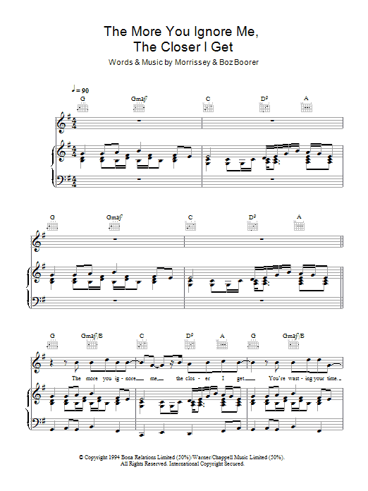 Download or print Morrissey The More You Ignore Me, The Closer I Get sheet music, chords and digital score arranged for Lead Sheet / Fake Book. This Rock score includes 3 page(s).