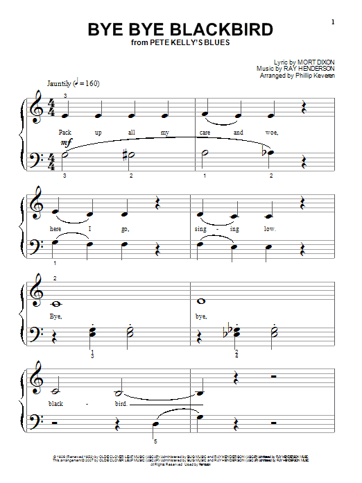 Download or print Mort Dixon Bye Bye Blackbird (arr. Phillip Keveren) sheet music, chords and digital score arranged for Beginning Piano Solo. This Jazz score includes 2 page(s).