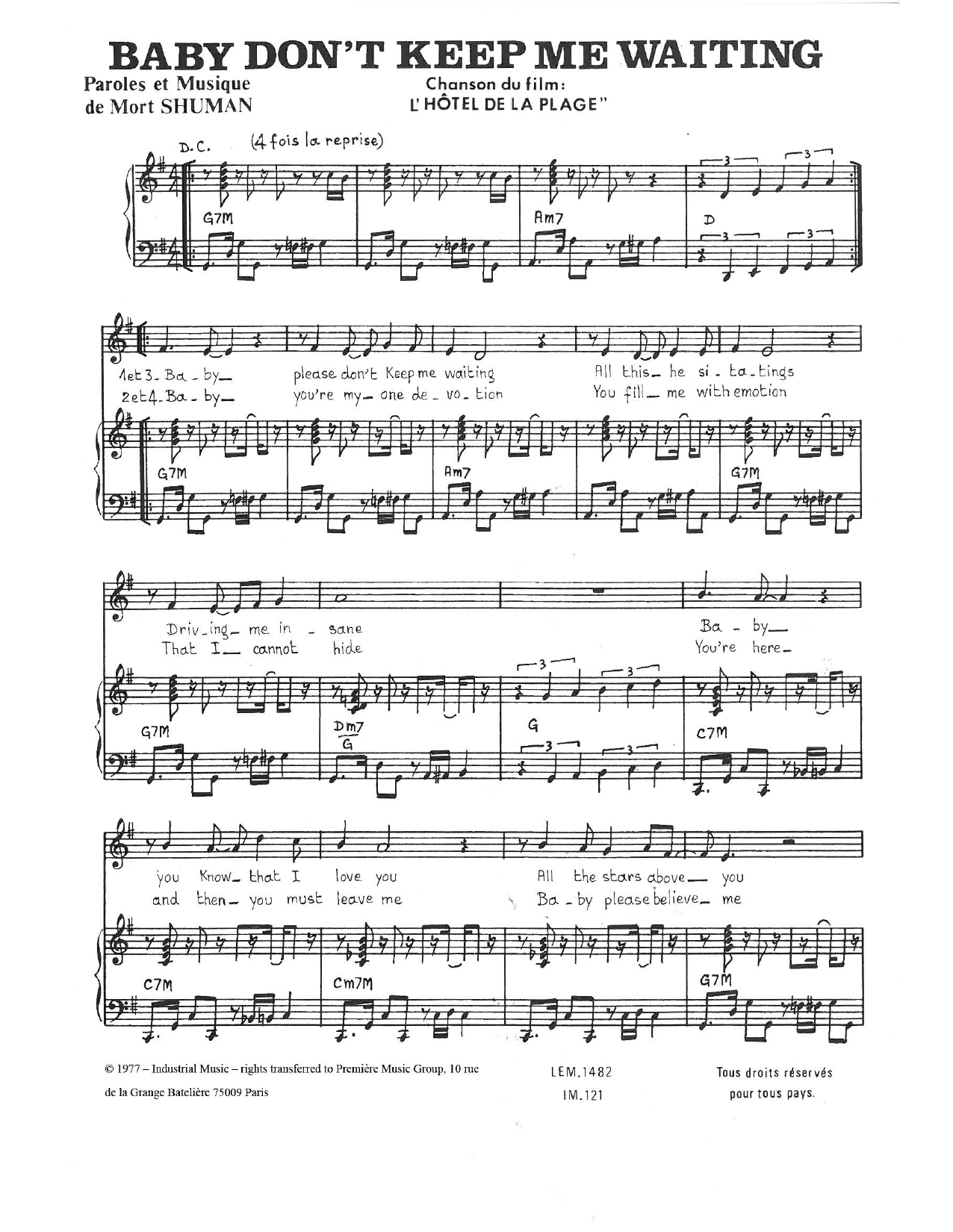 Download or print Mort Shuman Baby Don't Keep Me Wating sheet music, chords and digital score arranged for Piano & Vocal. This Standards score includes 3 page(s).