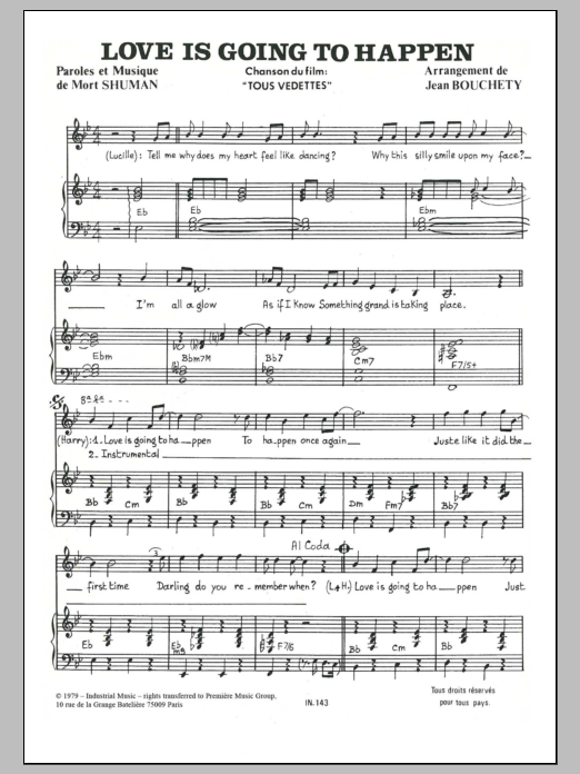 Download or print Mort Shuman Love Is Going To Happen sheet music, chords and digital score arranged for Piano & Vocal. This Pop score includes 3 page(s).